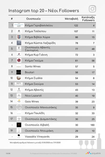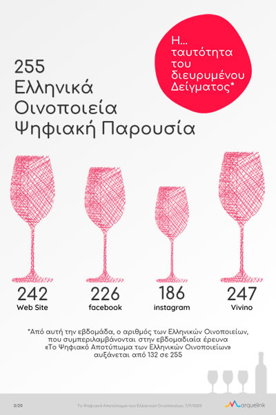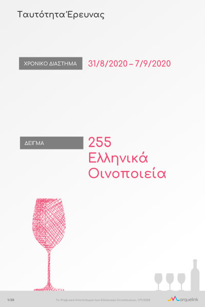 Η ενημερωμένη έκδοση, της έρευνας «Το Ψηφιακό Αποτύπωμα των Ελληνικών Οινοποιείων», για το χρονικό διάστημα 31/8/2020 έως 7/9/2020, είναι διαθέσιμη.