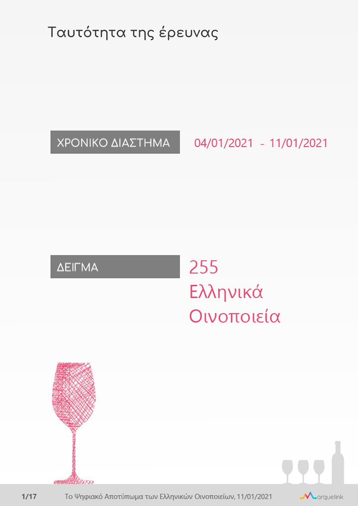 Η ενημερωμένη έκδοση, της έρευνας «Το Ψηφιακό Αποτύπωμα των Ελληνικών Οινοποιείων», για το χρονικό διάστημα 4/1/2020 έως 11/1/2021, είναι διαθέσιμη.