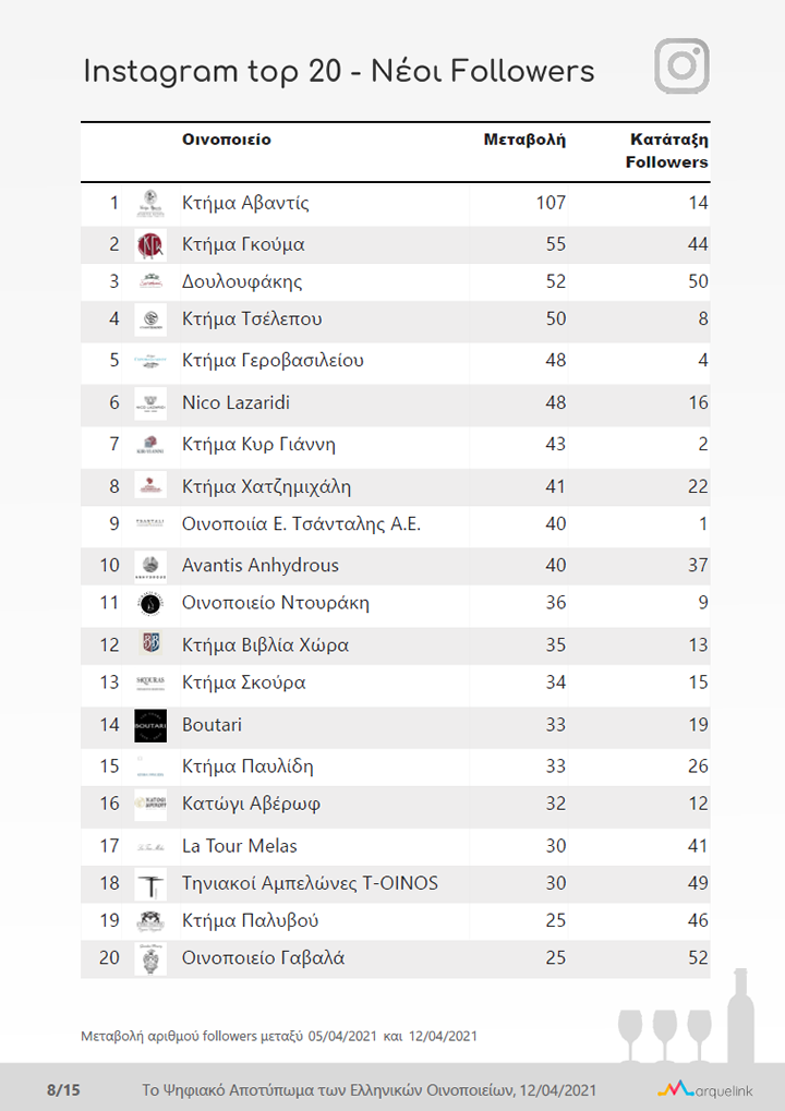 Η ενημερωμένη έκδοση, της έρευνας «Το Ψηφιακό Αποτύπωμα των Ελληνικών Οινοποιείων», για το χρονικό διάστημα 5/4/2020 έως 12/4/2021, είναι διαθέσιμη.